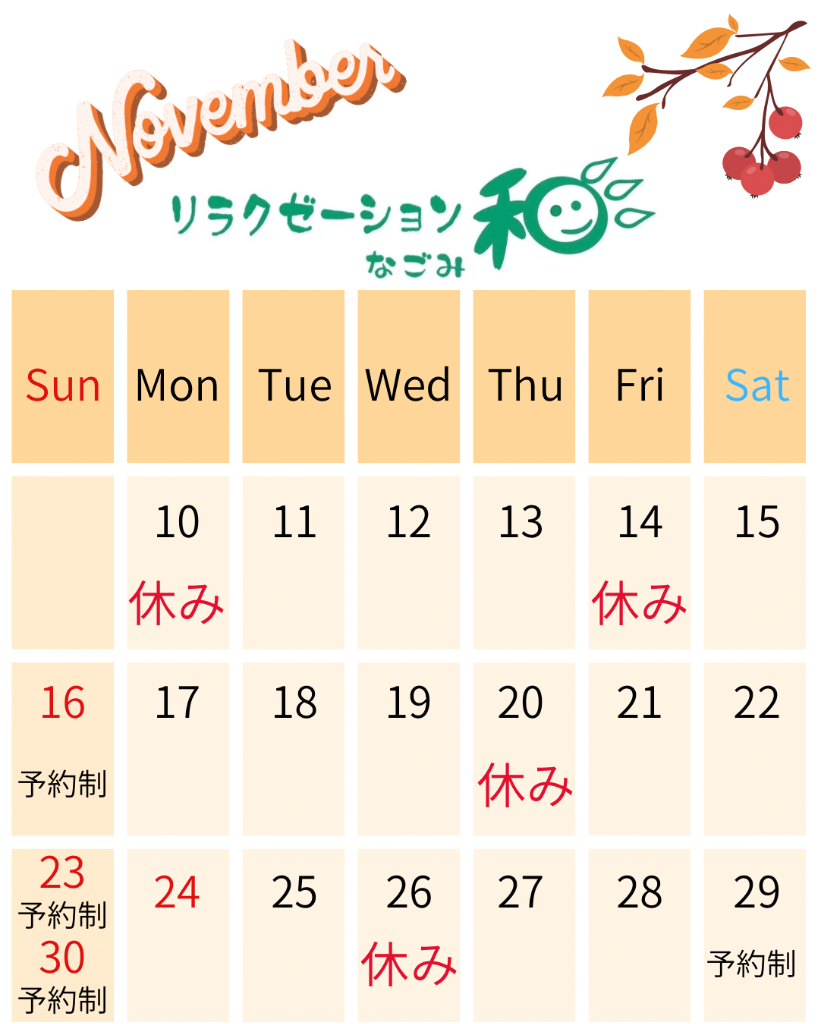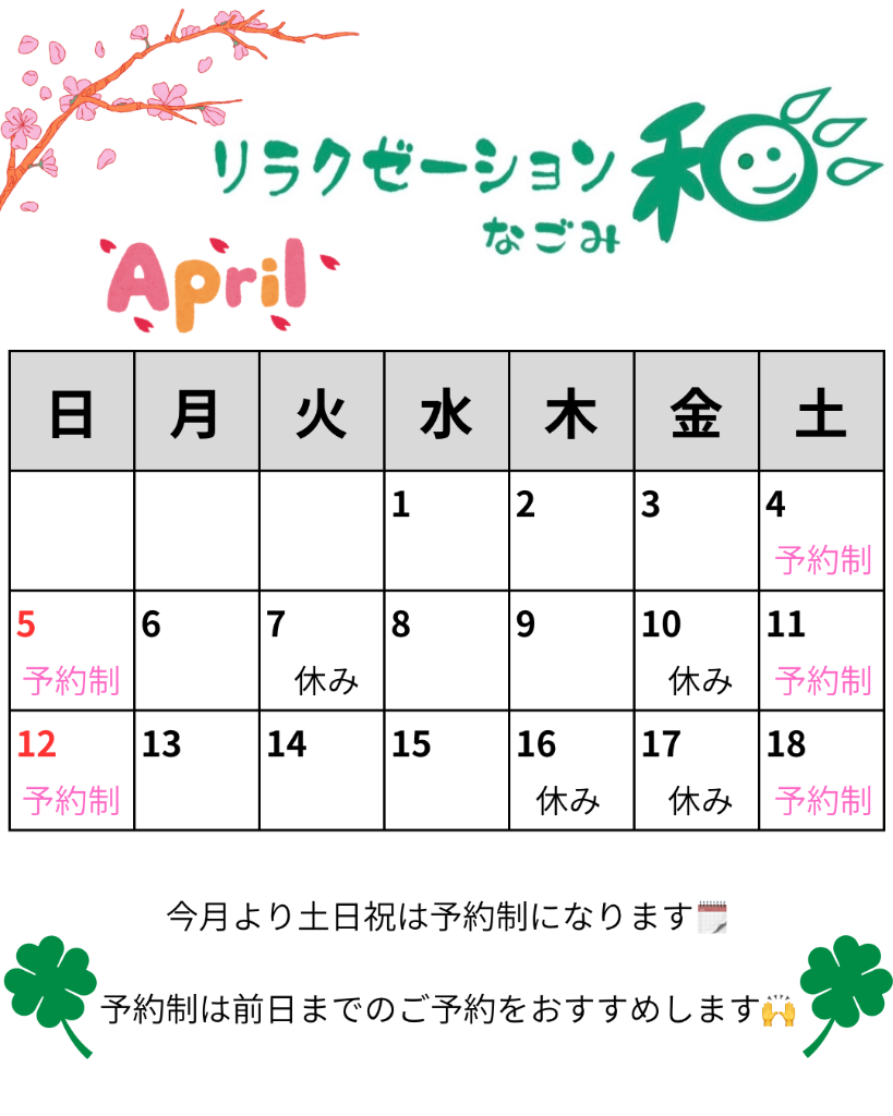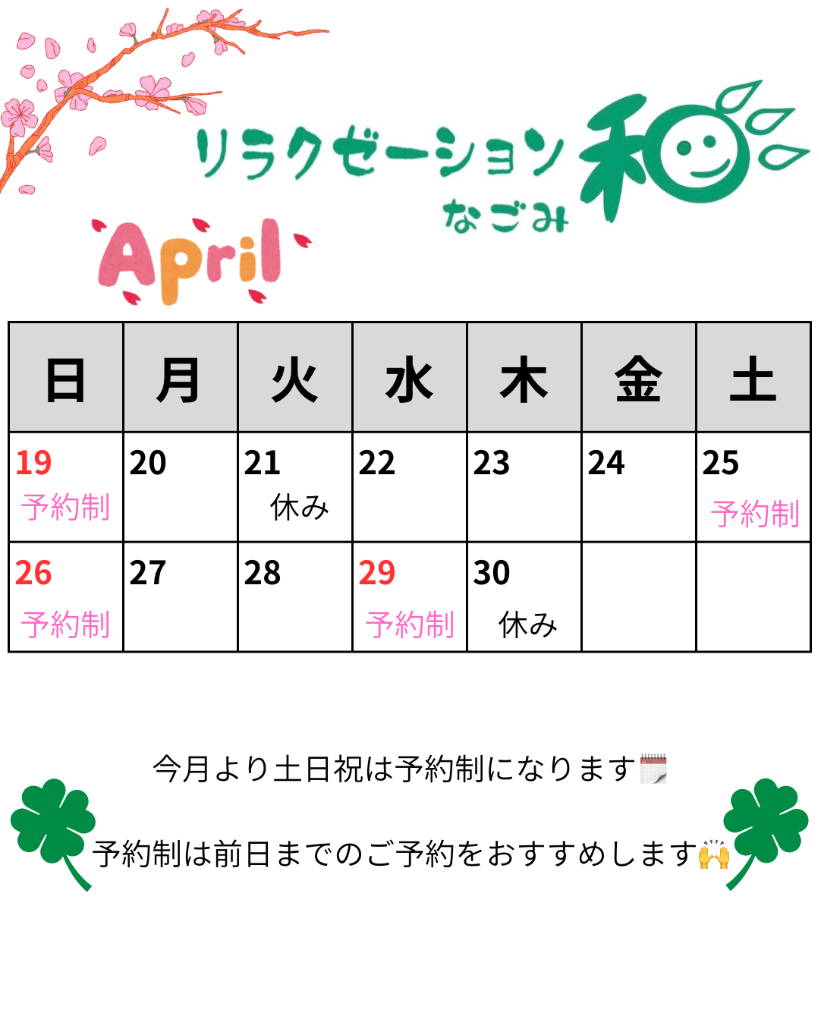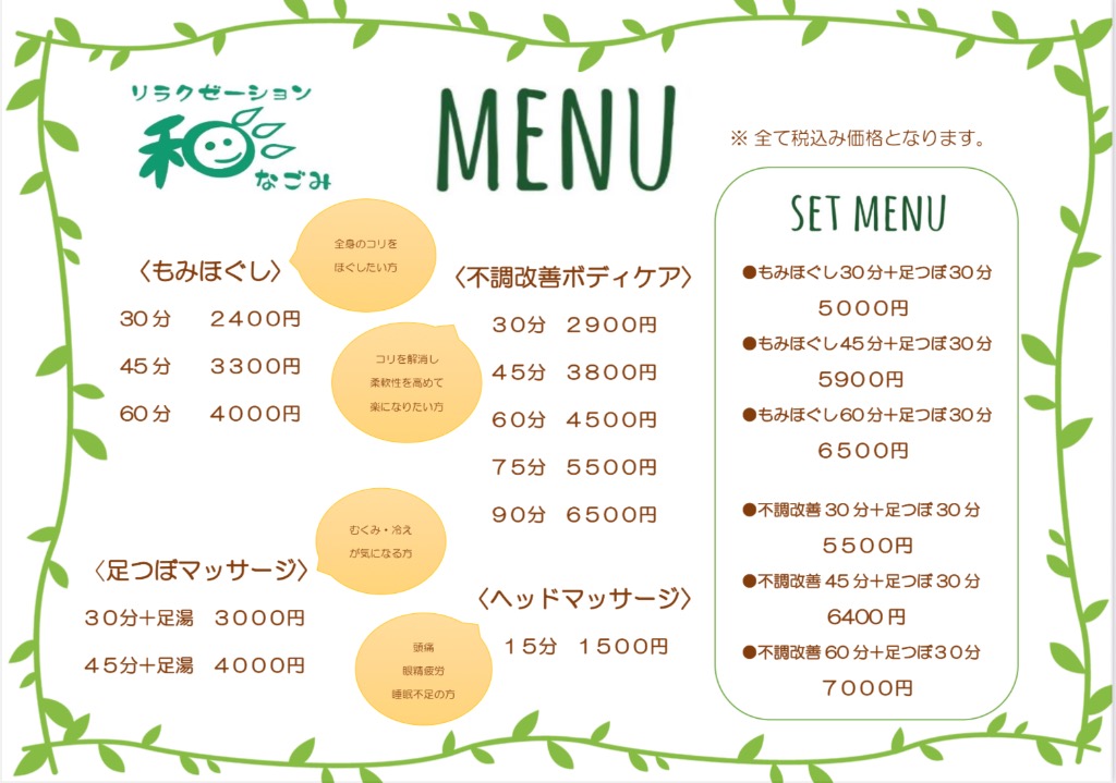 和ーなごみーに来て良かった~!と思っていただけるように、心を込めて施術致しますので皆様のご来店、心よりお待ちしています。