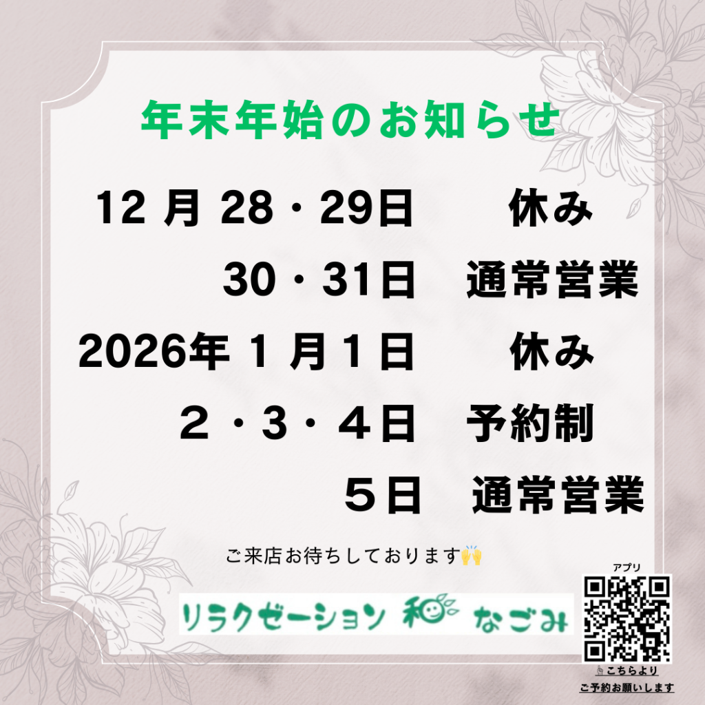 和ーなごみーに来て良かった~!と思っていただけるように、心を込めて施術致しますので皆様のご来店、心よりお待ちしています。